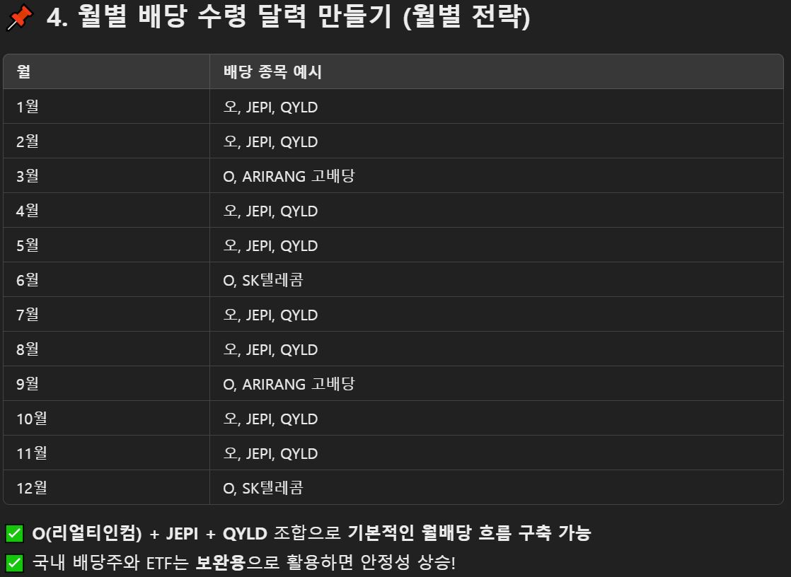 📌 4. 월별 배당 수령 달력 만들기 (월별 전략)