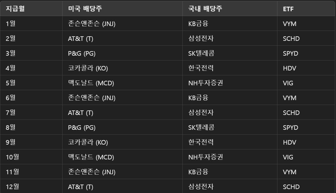 👉 하지만 배당 지급 시기를 조합하면 매월 꾸준한 배당금을 받을 수 있습니다!